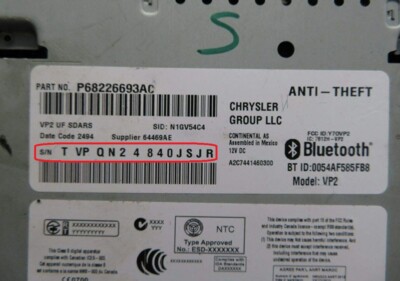 Radio Code Anti Theft For Continental Chrysler Jeep Cherokee Serial Tvpqn Tqn Ebay
